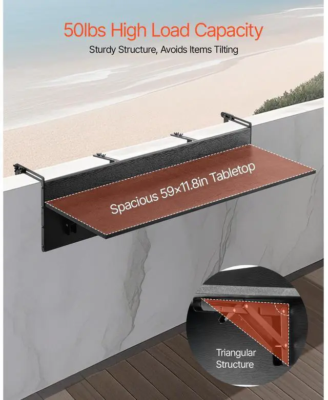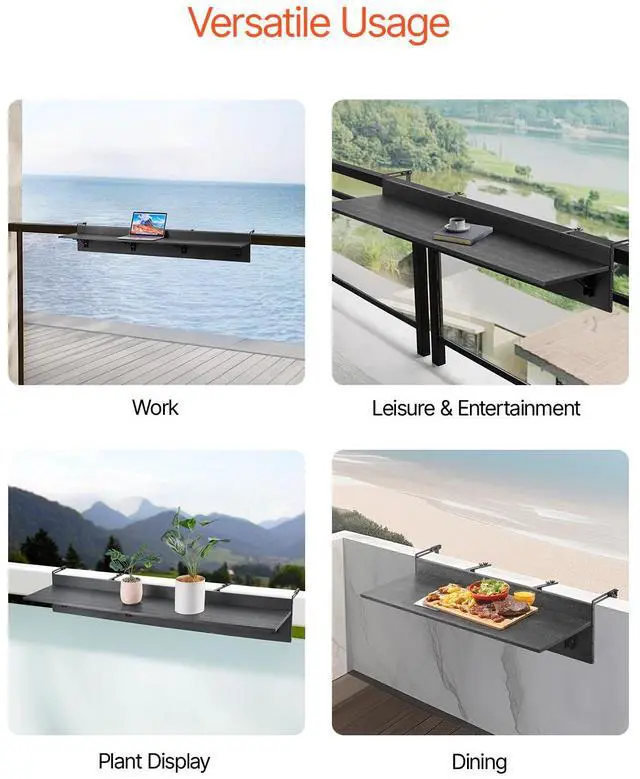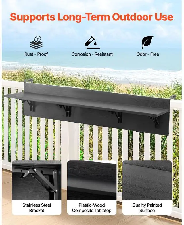 Balcony Hanging Table 12 x 48 in Outdoor Patio Railing Bar Table Foldable