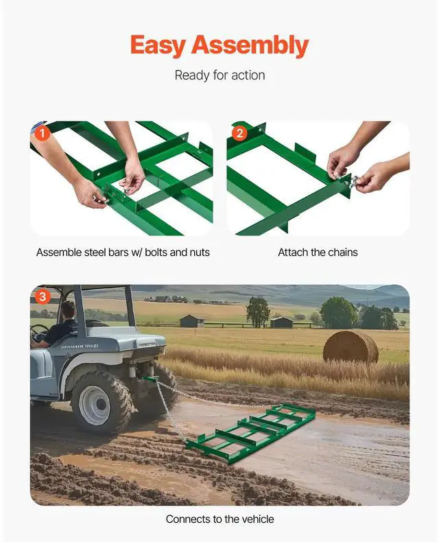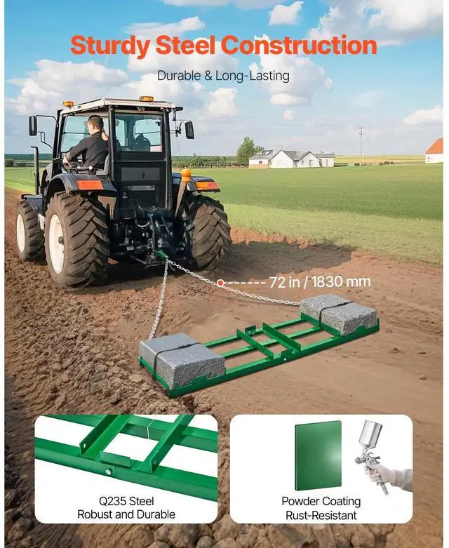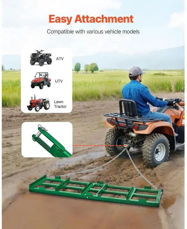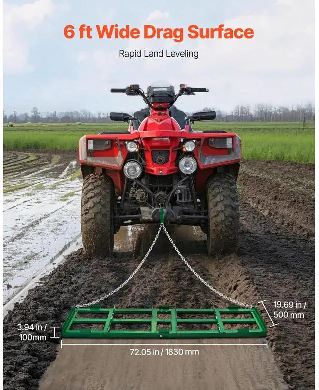 Drag Harrow 6 ft Heavy Duty Tow Behind Drag Harrow Driveway Grader Rake