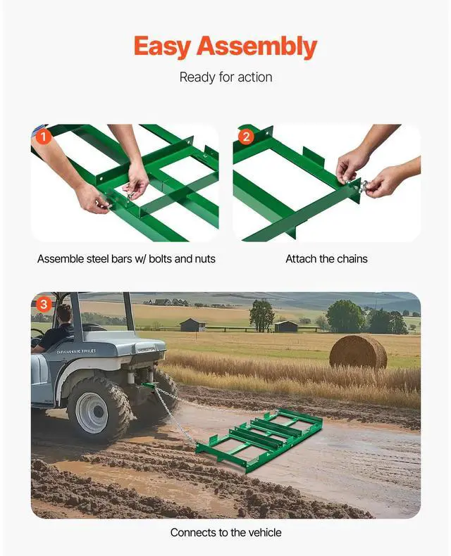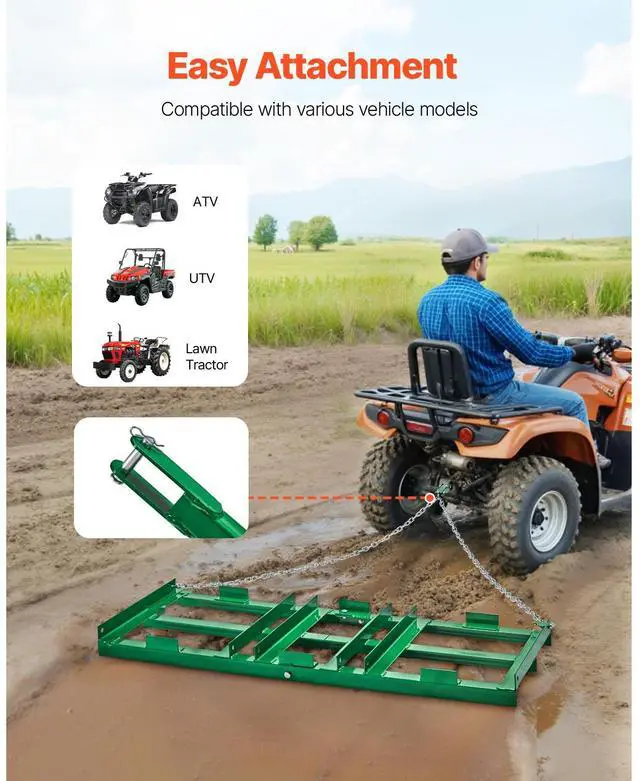 Drag Harrow 4 ft Heavy Duty Tow Behind Drag Harrow Driveway Grader Rake
