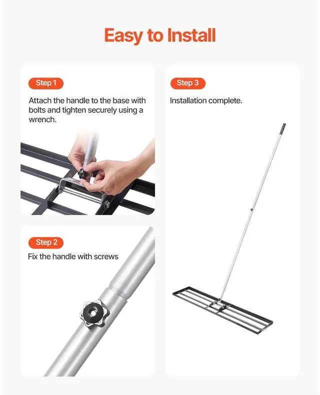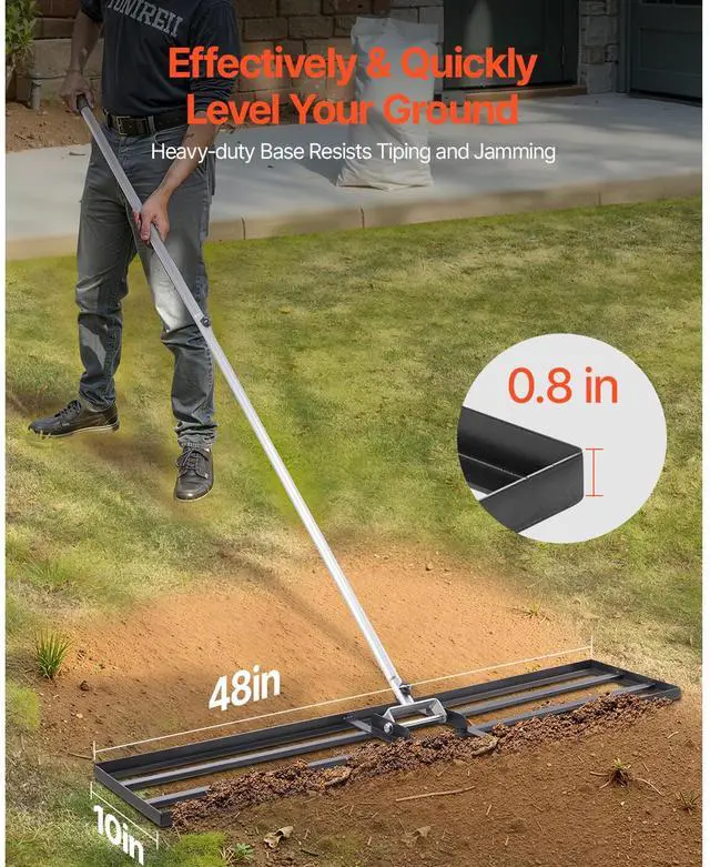 10x48in Lawn Leveling Rake Heavy Duty 83.9in Adjustable Handle for Yard & Garden