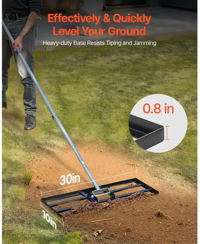 10x30in Lawn Leveling Rake Heavy Duty 83.9in Adjustable Handle for Yard & Garden