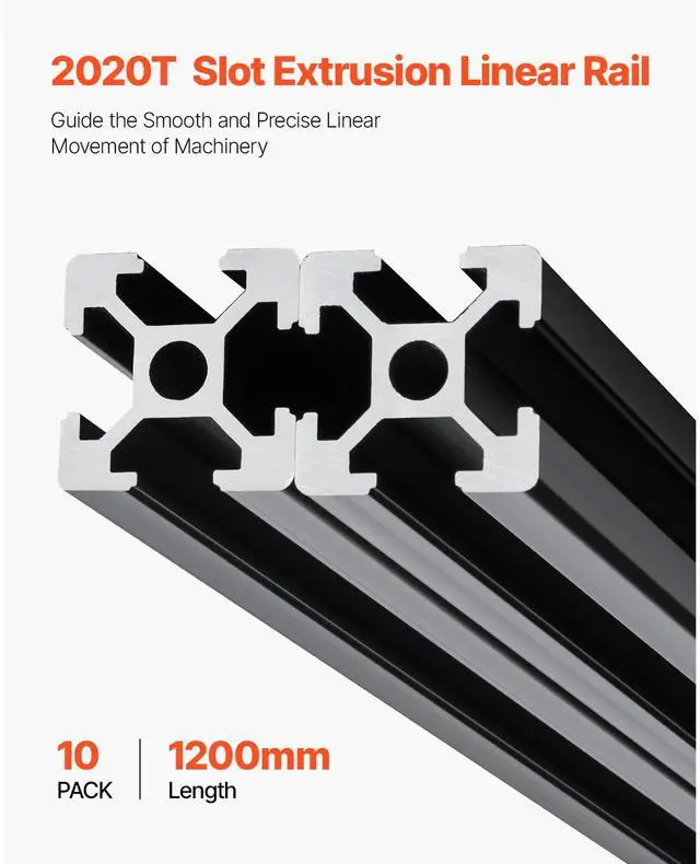 10PCS 47.2 in (1200mm) T Slot 2020 Aluminum Extrusion Anodized Linear Rail