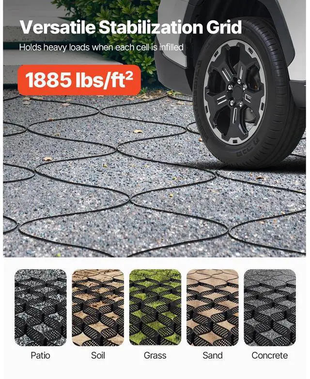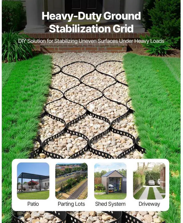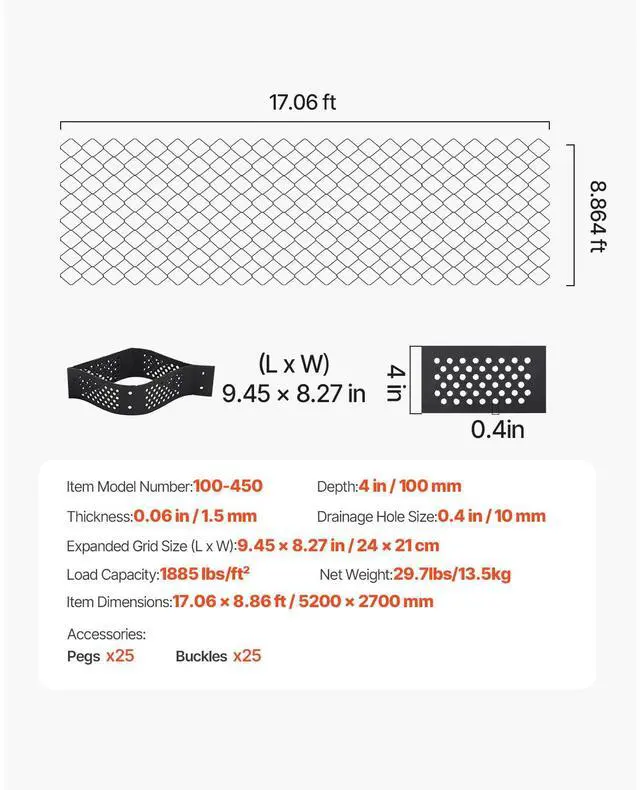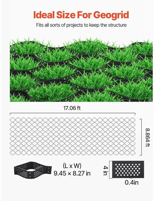 Gravel Grid, 4 Inch Depth, 17.06 x 8.86 FT / 5200 x 2700 mm, 1880 LBS Per Sq ft Grass Ground Retainer, Permeable Geo Grids Driveway Stabilization, for Garden, Patio, Walkway, RV Parking Slopes
