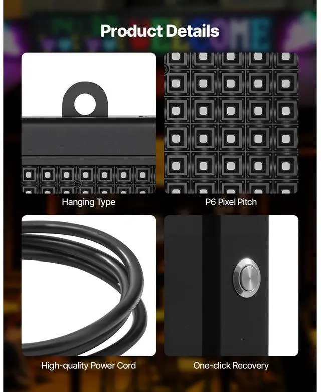 Main Materials: Aluminum, ABS, LED Panel,Item Model Number: P6-64160RGB,Product Weight: 7.0 kg / 15.4 lbs,Product Dimensions: 990x412x55 mm / 39x16.2x2.2 inches