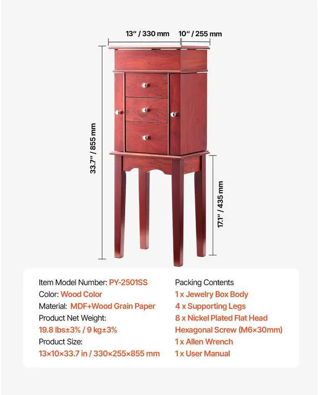 Product Size: 13 x 10 x 33.7 in / 330 x 255 x 855 mm