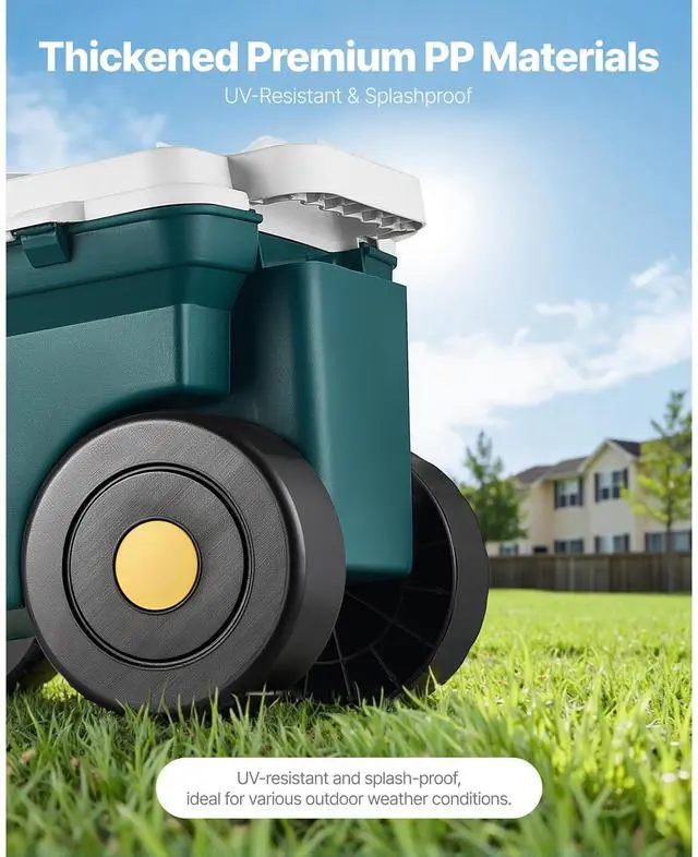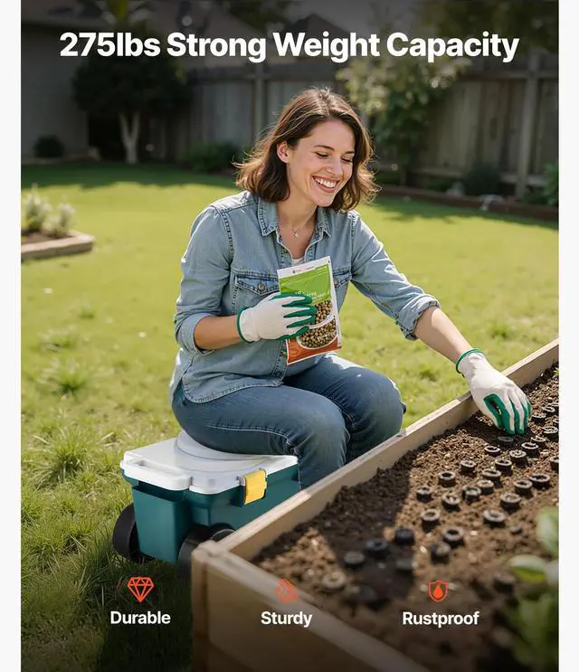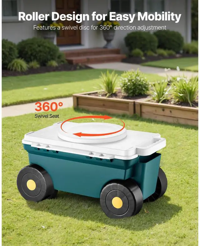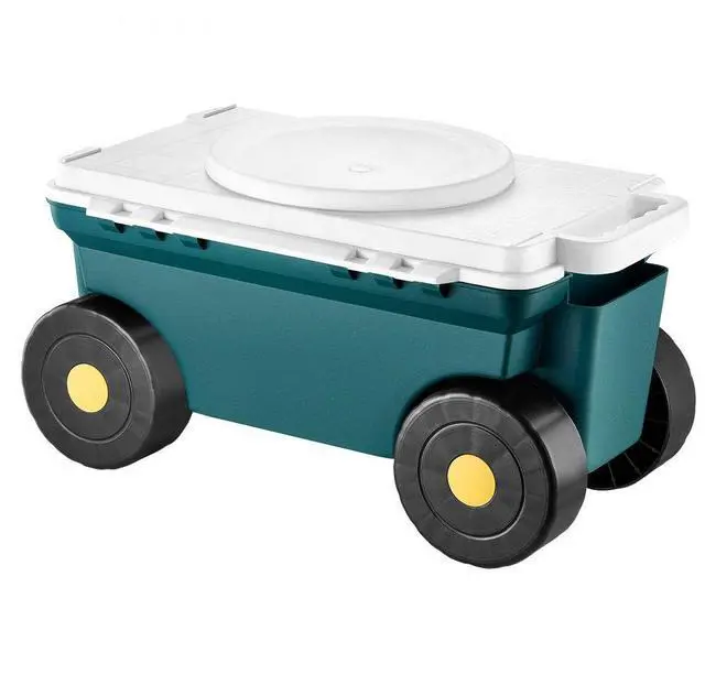 Rolling Garden Cart with Seat 276 lbs Plastic Garden Scooter Storage Bin & Seat