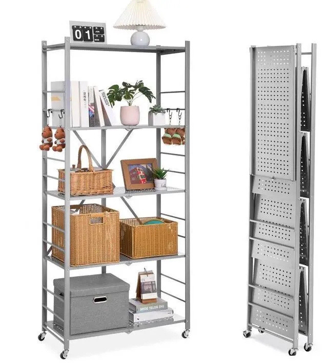 VEVOR Folding Storage Shelf with Wheels 5-Tier No Assembly Organizer Shelf Grey