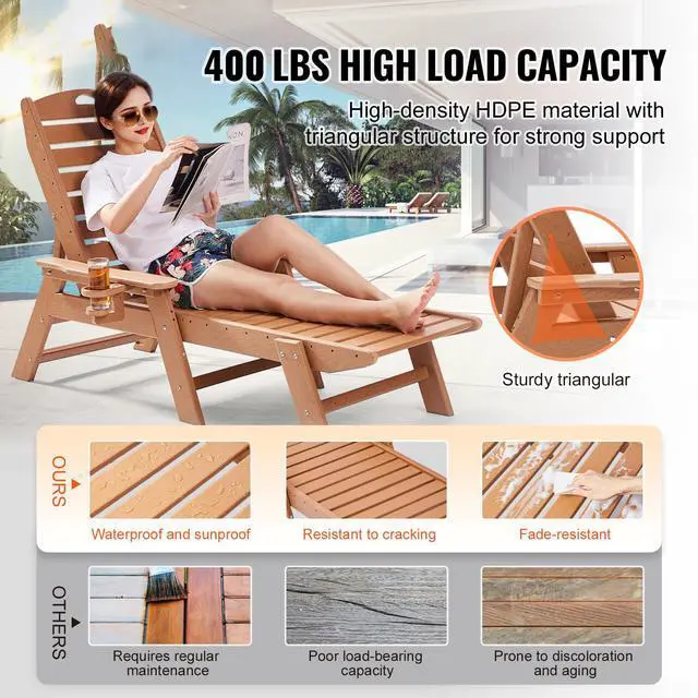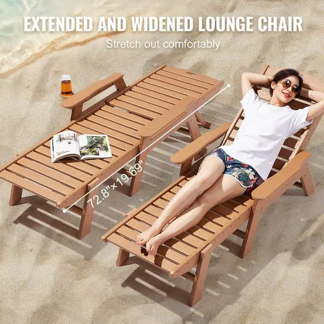 Outdoor Chaise Lounge Chair 6 Position Adjustable Reclining Bench Lounger Brown