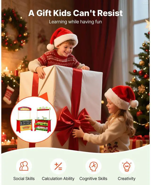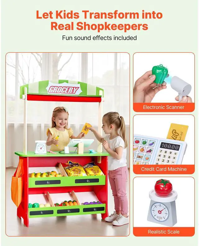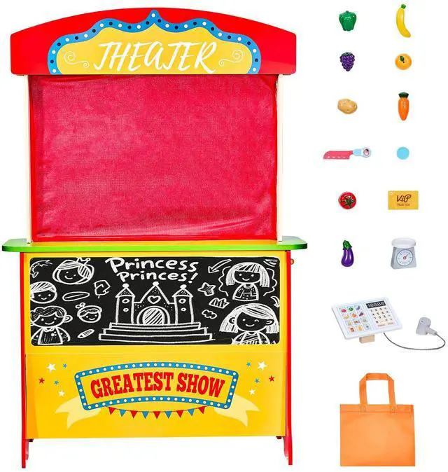 • VEVOR Wooden Puppet Theater 2-in-1 Reversible Play Store Kids Play Market Stand