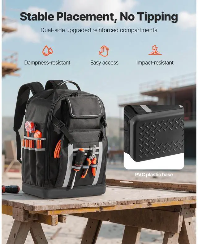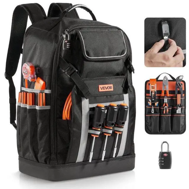 VEVOR Tool Backpack 56 Pockets Splash-resistant Jobsite Backpack for Electrician