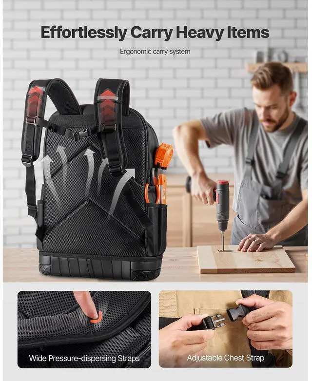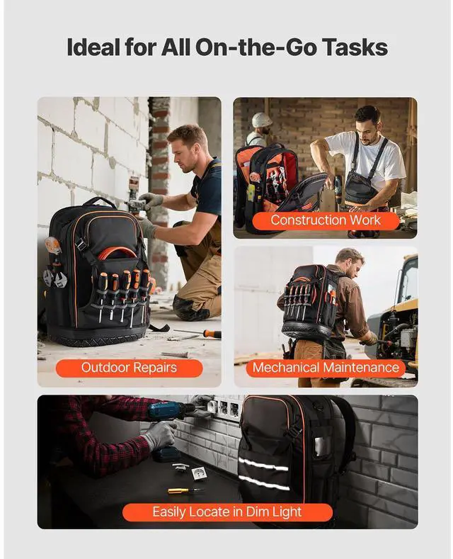 • VEVOR Tool Backpack 65 Pockets Tear-resistant Jobsite Backpack for Electrician