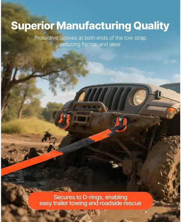 VEVOR Car Tow Cable Towing Strap Rope 36000 lbs 30ft 3-inch Emergency Heavy Duty