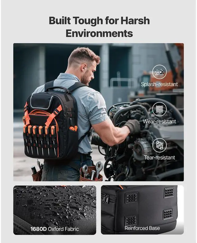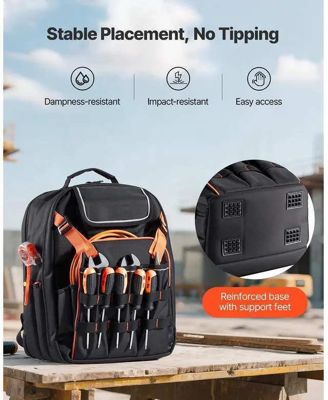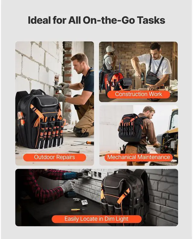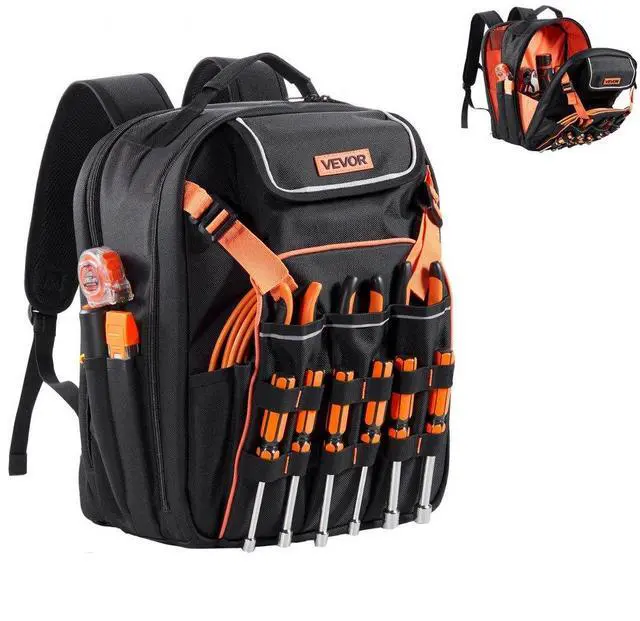 VEVOR Tool Backpack 45 Pockets Tear-resistant Jobsite Backpack for Electrician