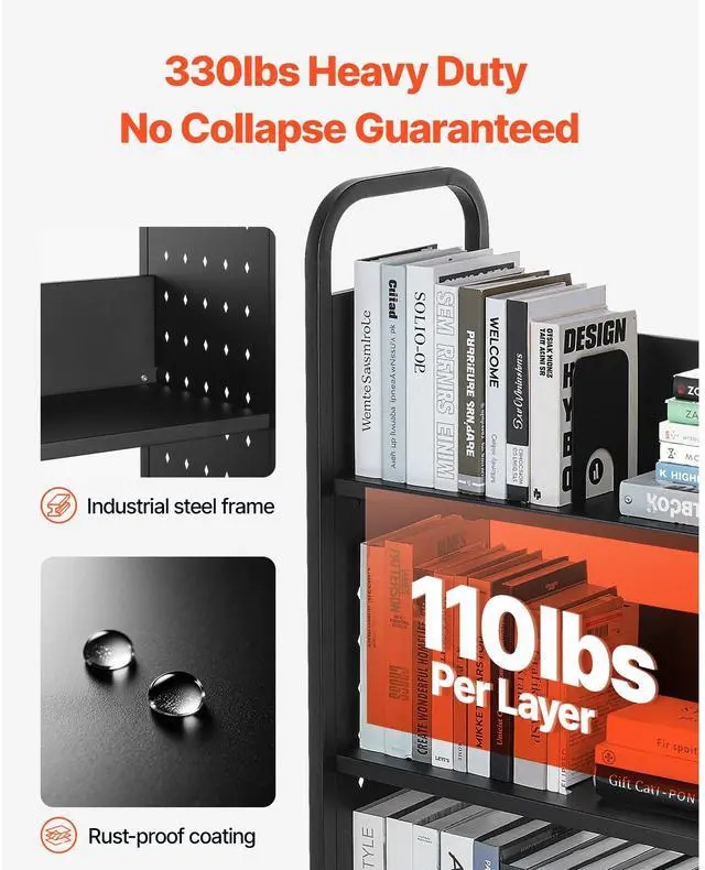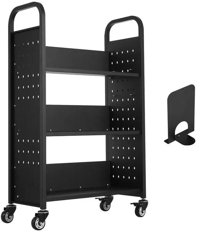 VEVOR 3-Tier Rolling Book Cart Single Sided L-Shaped Shelves Book Truck in Black