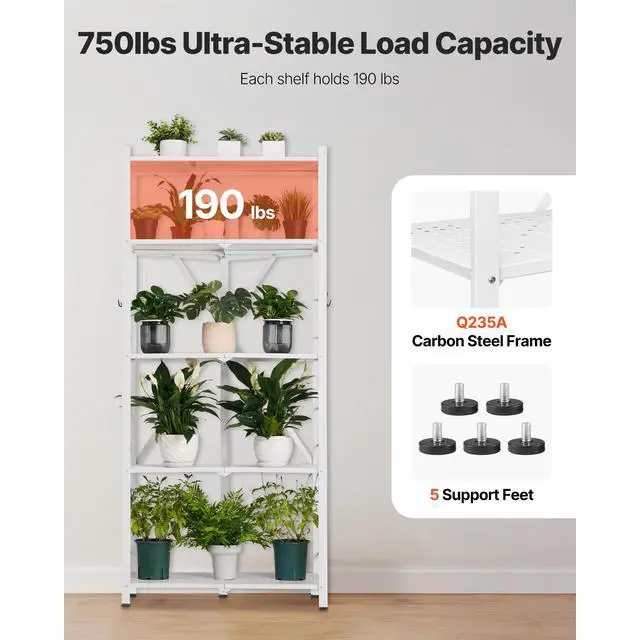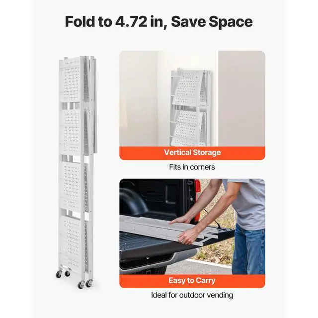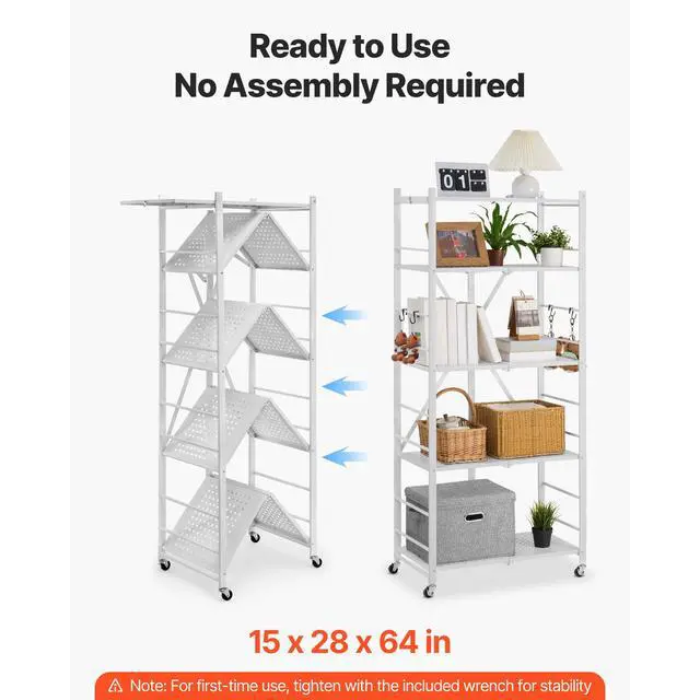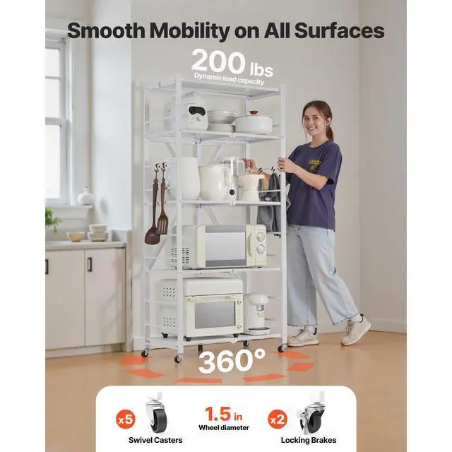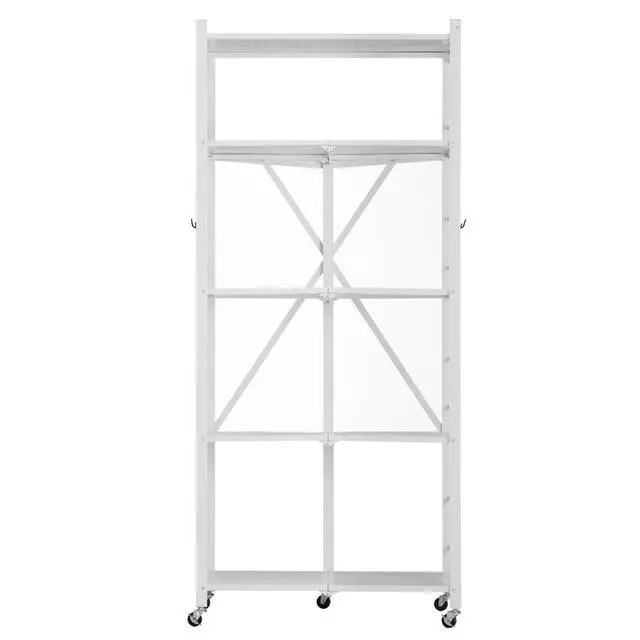 • VEVOR Folding Storage Shelf with Wheels 5-Tier Metal Shelving Unit White
