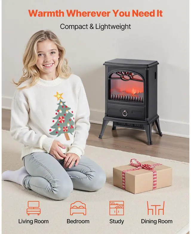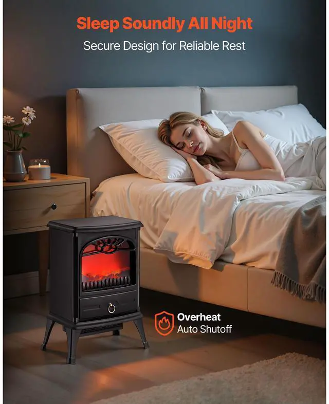 22.8 Inch Freestanding Electric Fireplace Heater 1500W Adjustable Flames Black