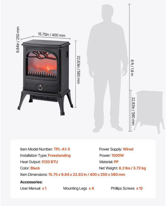 Installation Type: Freestanding,Color: Black,Item Model Number: TPL-A1-5,Material: PP,Item Dimensions: 15.75 x 9.84 x 22.83 in / 400 x 250 x 580 mm,Net Weight: 8.2 lbs / 3.72 kg,Power: 1500W,Heat Output: 5120 BTU,Power Supply: Wired