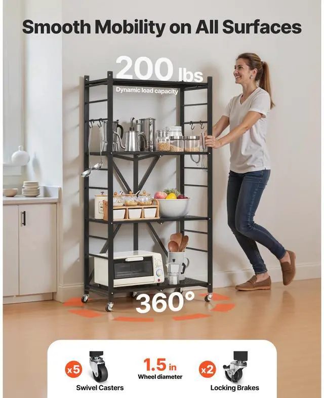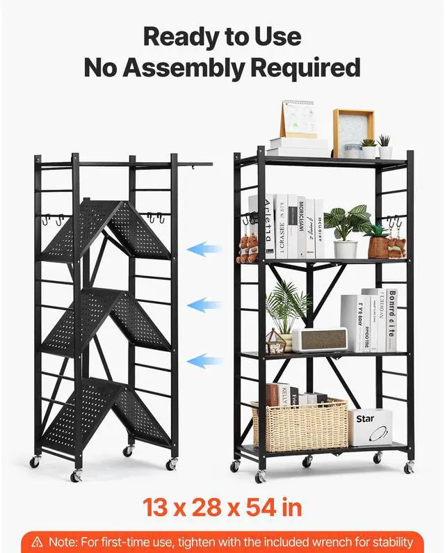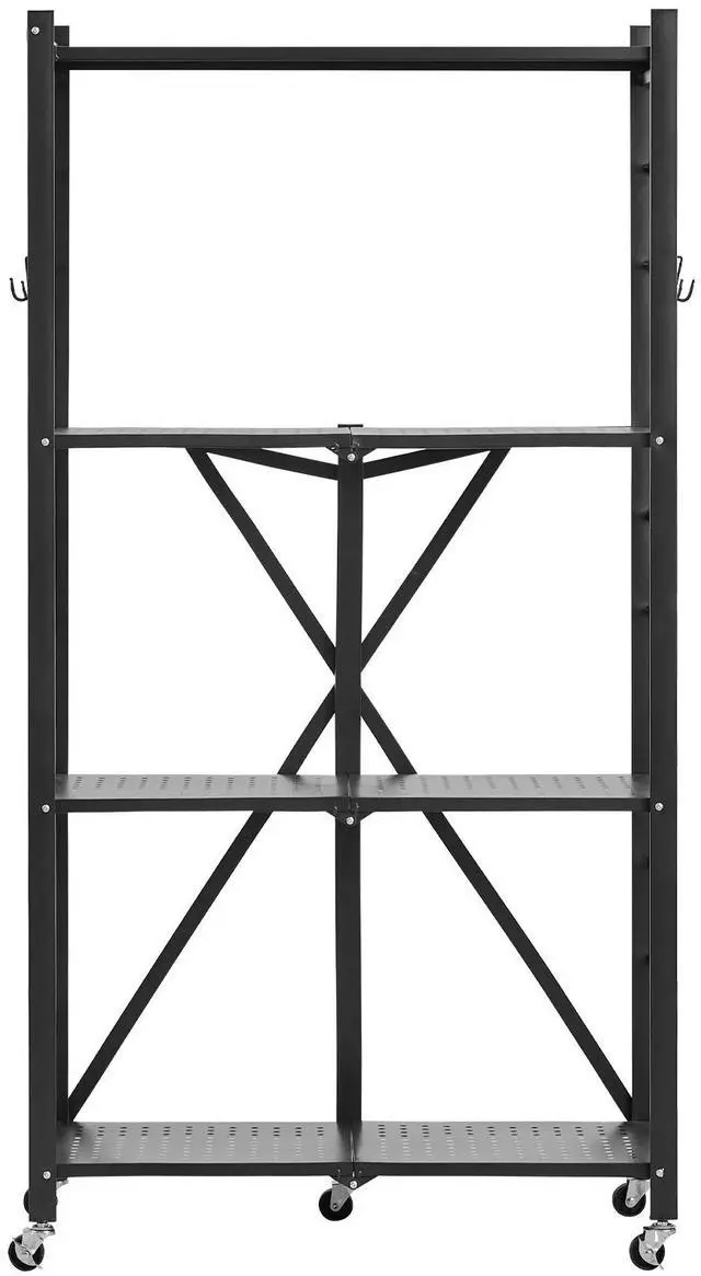 VEVOR 4-Tier Foldable Storage Shelf with Wheels 28 x 13 x 54-inch Metal Shelving
