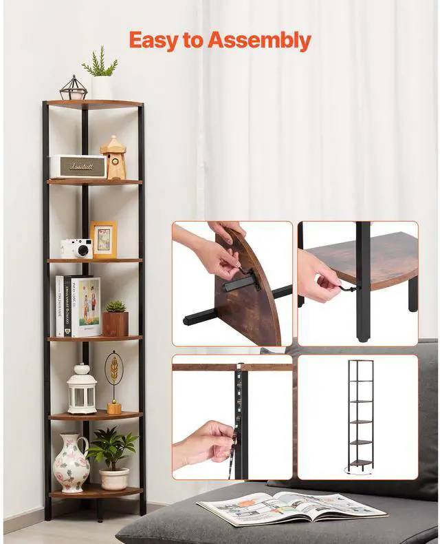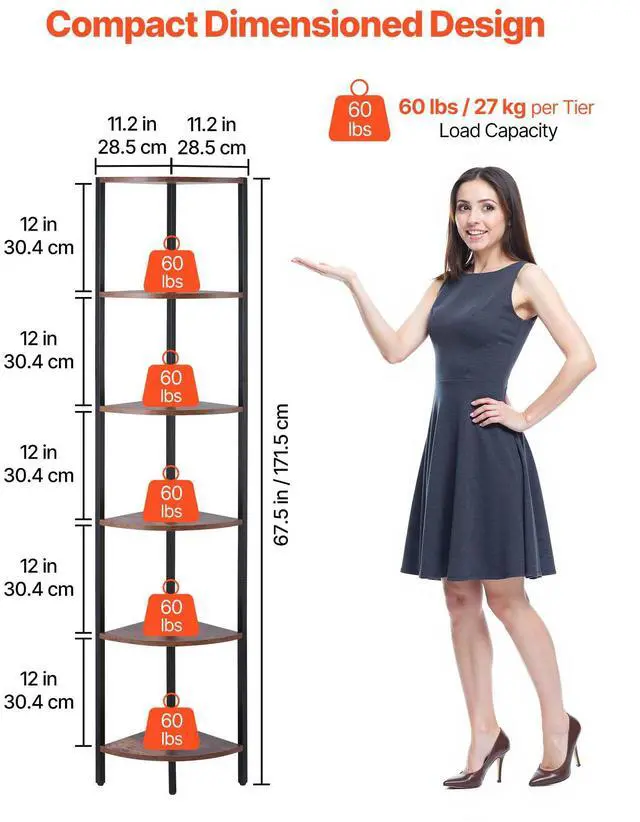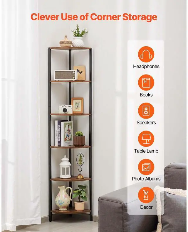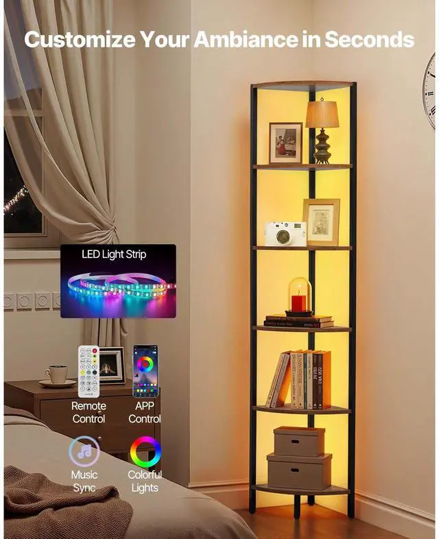 VEVOR 6 Tier Corner Shelf Tall Corner Stand with LED Light Narrow Display Rack
