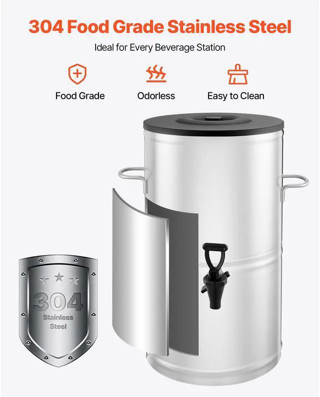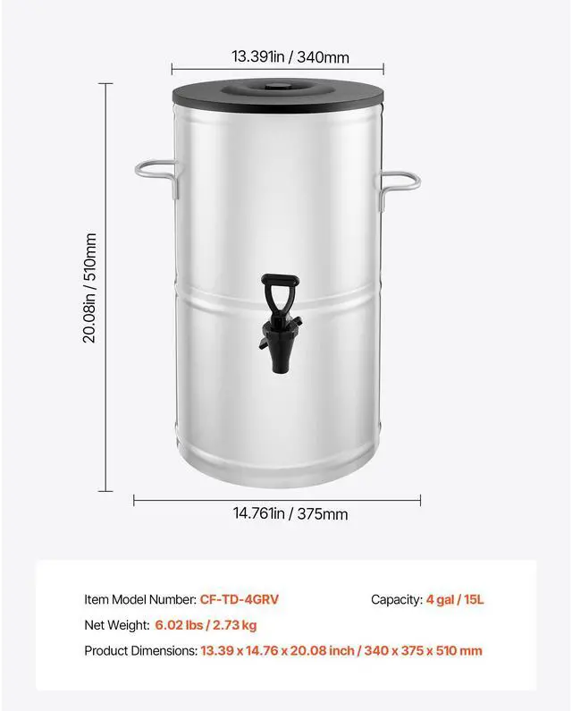 Ice Tea Dispenser 4 Gal/15L for Iced Tea Juice Coffee 304 Stainless Steel