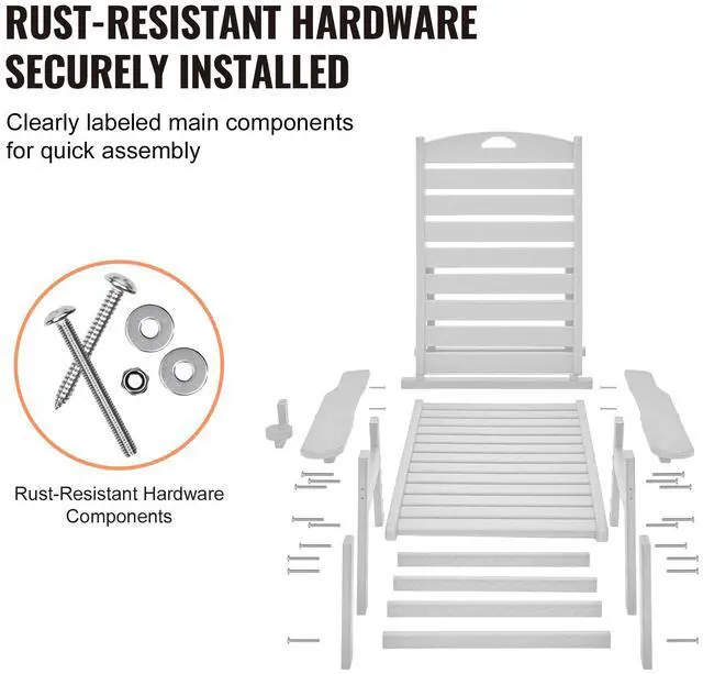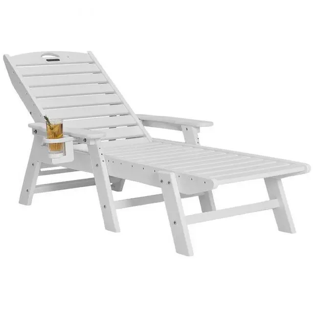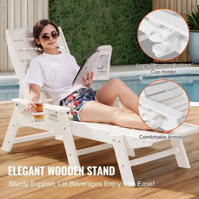 Outdoor Chaise Lounge Chair 6 Position Adjustable Reclining Bench Lounger White
