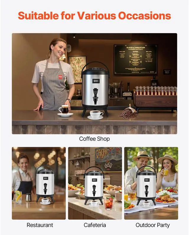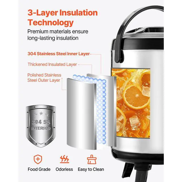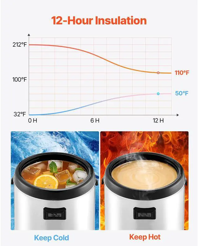 Insulated Beverage Dispenser for Hot & Cold Drinks 1.5 Gal Stainless Steel