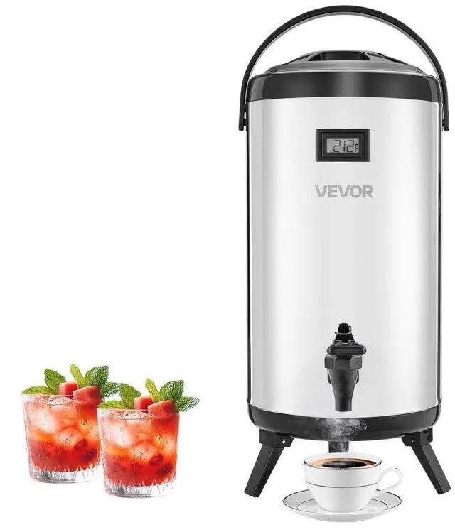 Insulated Beverage Dispenser for Hot & Cold Drinks 2.4 Gal Stainless Steel