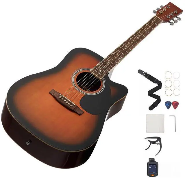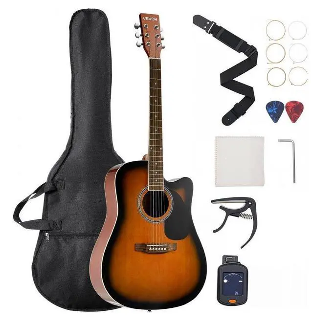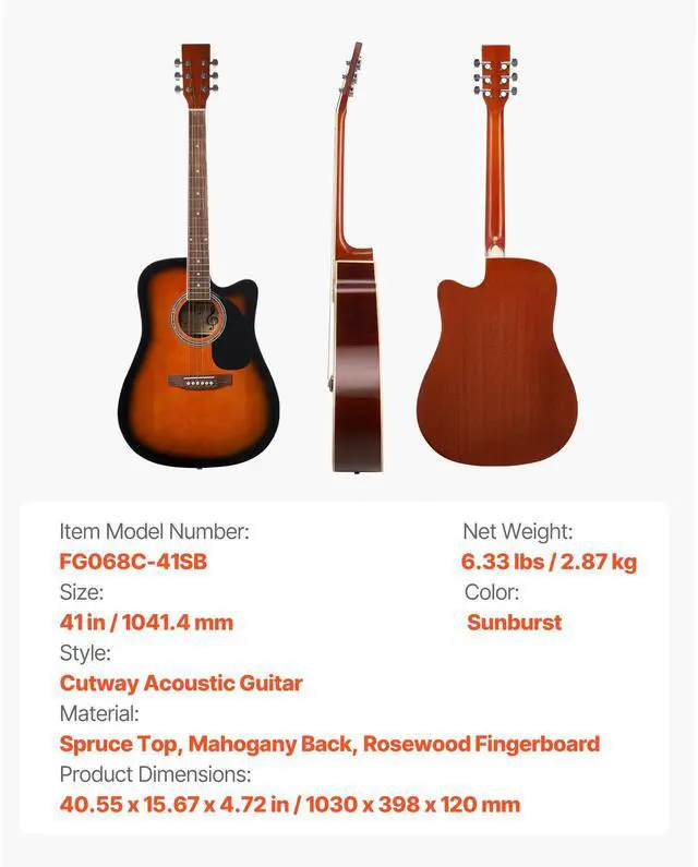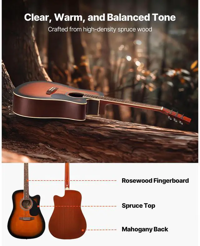 41 in Cutway Acoustic Guitar, 6-String, Sunburst Solid Spruce Top Guitar, Beginner Bundle with Gig Bag, Tuner, Strap, Steel Strings, Picks, Capo, Rosewood Fingerboard, for Fingerstyle Solo Jazz