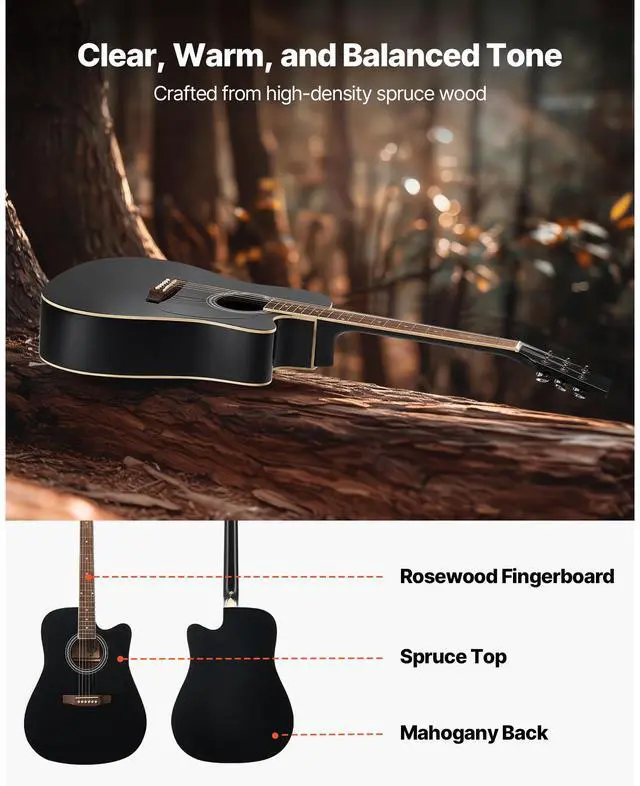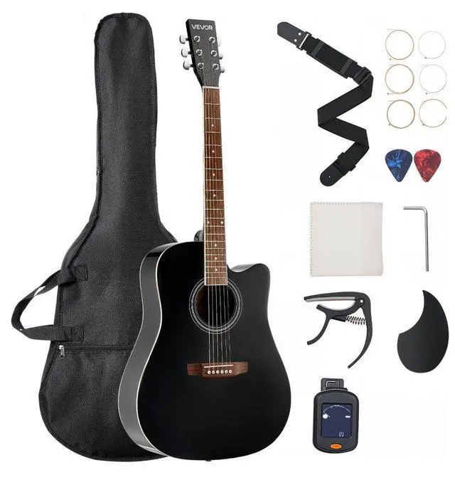 41 in Cutway Acoustic Guitar Beginner Bundle with Gig Bag for Adult Solo Black