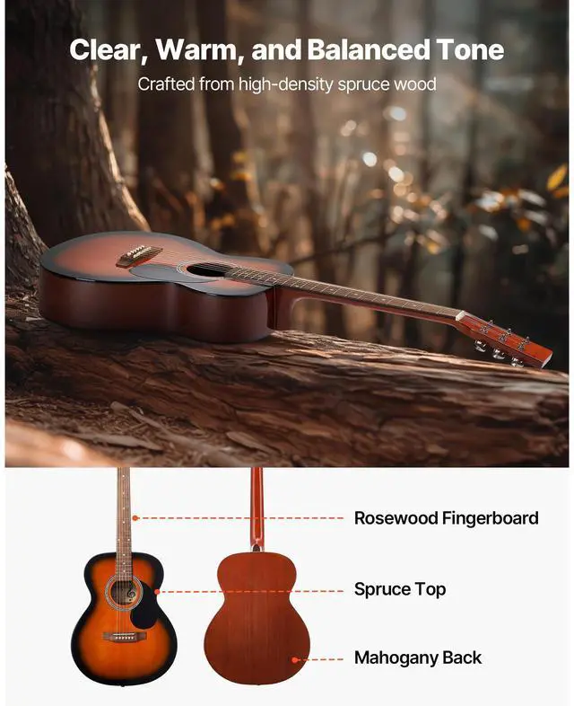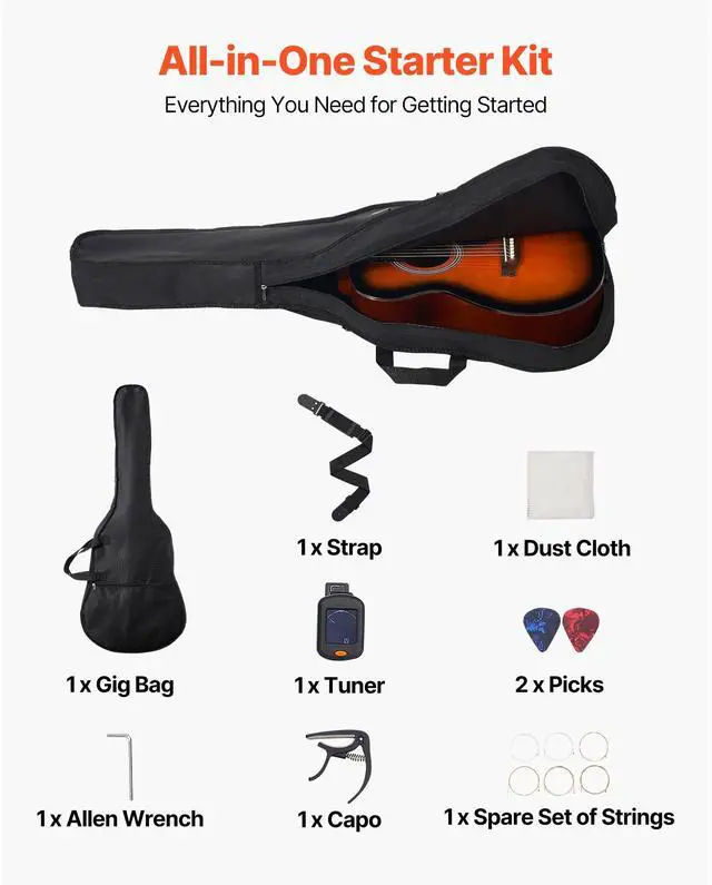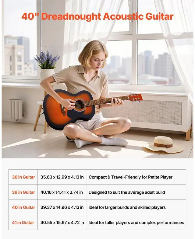 40 in Dreadnought Acoustic Guitar Beginner Bundle with Gig Bag Adult Sunburst
