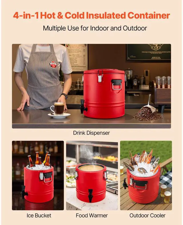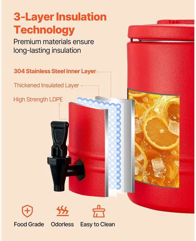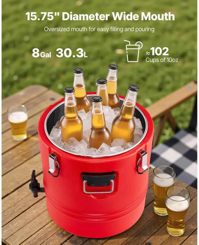 Insulated Beverage Dispenser for Hot and Cold Drinks 8 Gal/30L Cooler Jug