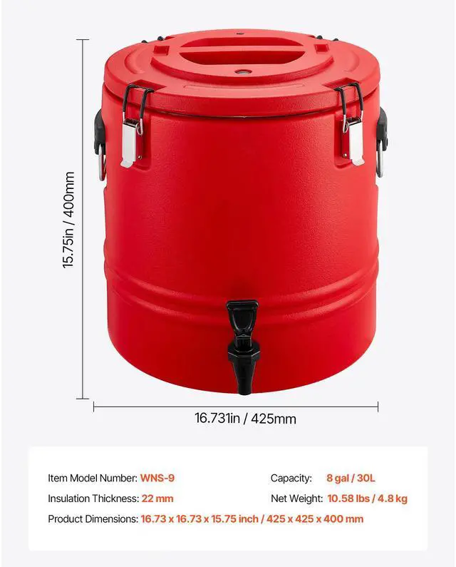 Capacity: 8 gal / 30L,Item Model Number: WNS-9,Insulation Thickness: 0.87 inch / 22 mm,Product Dimensions: 16.73 x 16.73 x 15.75 inch / 425 x 425 x 400 mm,Net Weight: 10.58 lbs / 4.8 kg