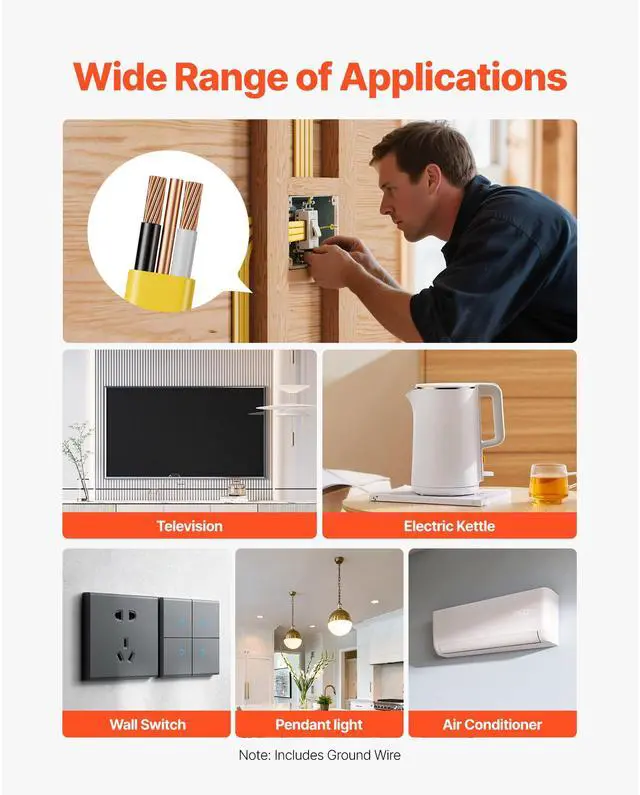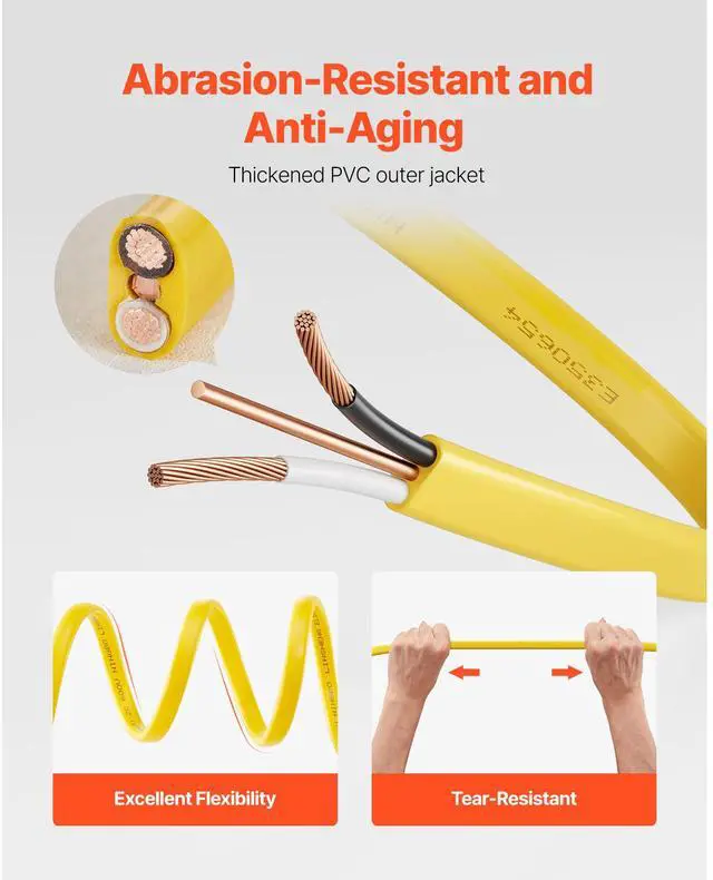 NM-B Wire 10AWG/2C Copper Core Cable 50 ft Electrical Wire with Ground