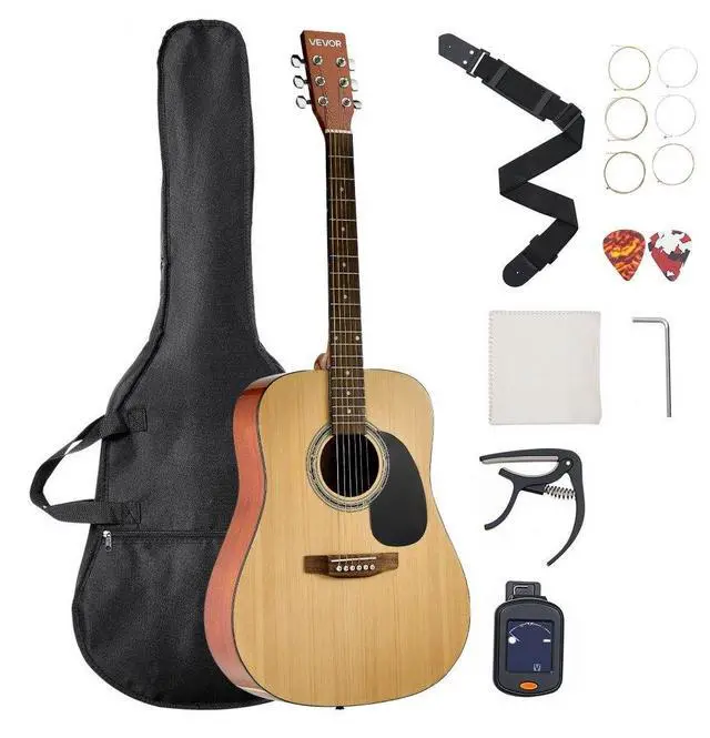 41 in Dreadnought Acoustic Guitar Natural Beginner Bundle Gig Bag for Adult Tall