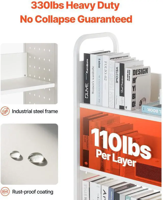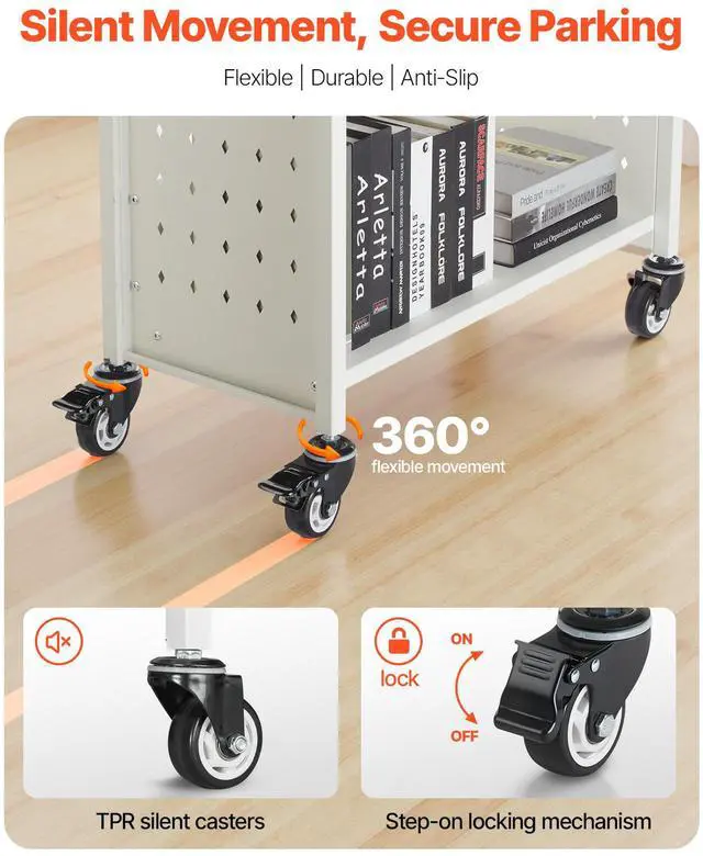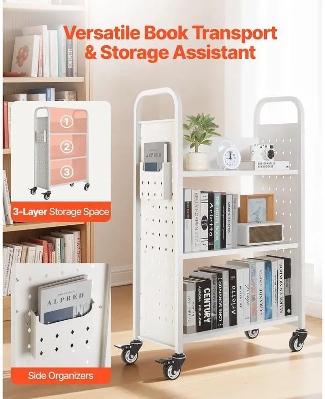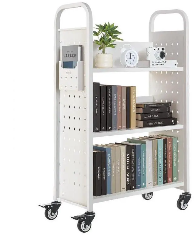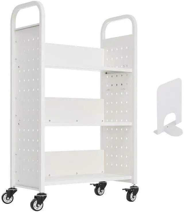 • VEVOR 3-Tier Rolling Book Cart Single Sided L-Shaped Shelves Book Truck in White