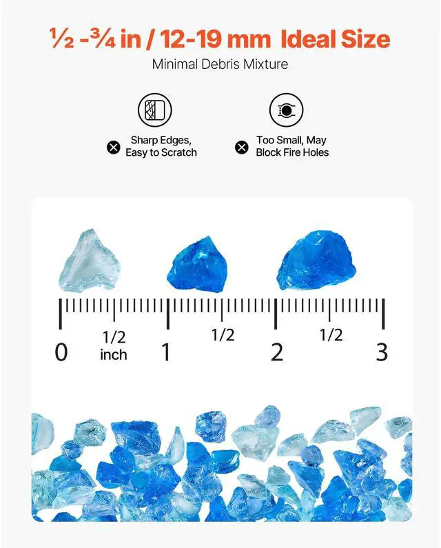 10 LBS Fire Glass 3/4-Inch Fireplace Glass Rocks for Fire Pit Table 3 Colors