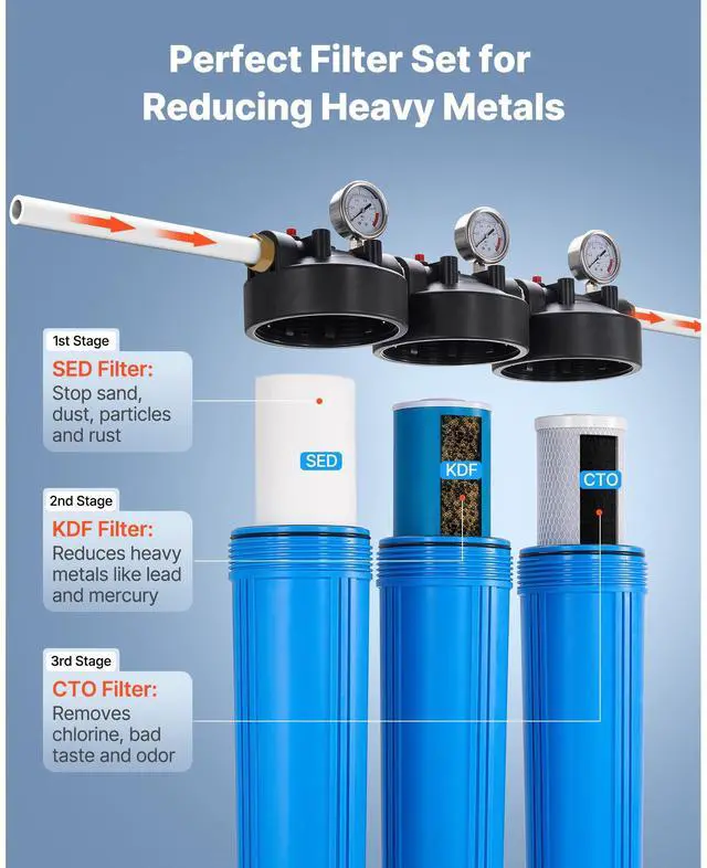 3-Stage Whole House Water Filter System 4.5" x 20" KDF Heavy Metal Removal