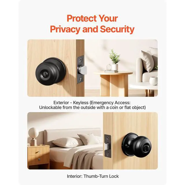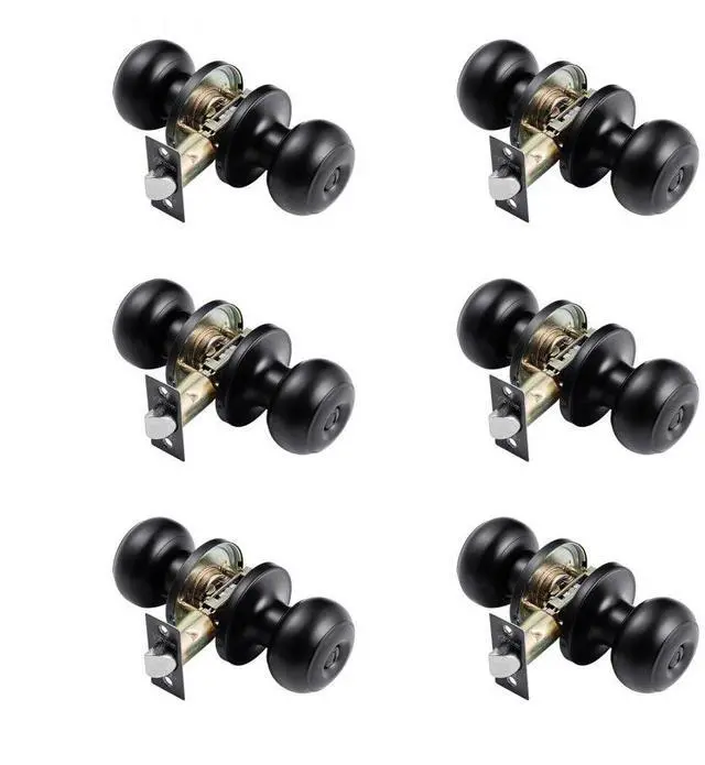 Round Privacy Door Knobs for Bedroom Bathroom Matte Black 6 Pack Keyless