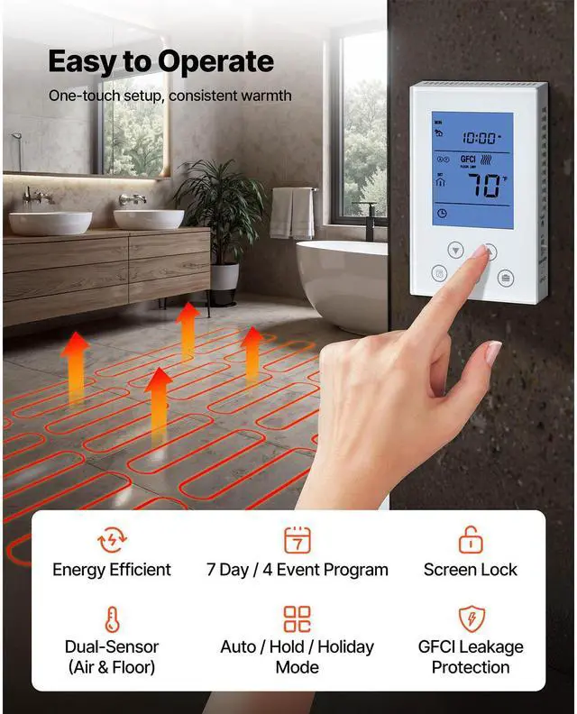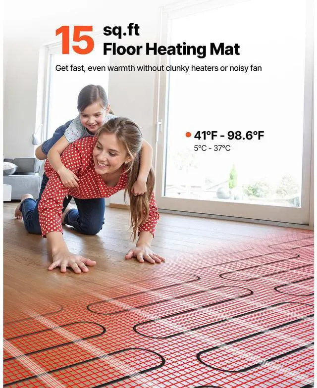 15 sqft Self-Adhesive Mesh Floor Heating Mat 120V Radiant Heated System