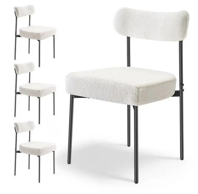 Set of 4 Boucle Dining Chairs Modern Kitchen Chair Curved Backrest Metal Legs