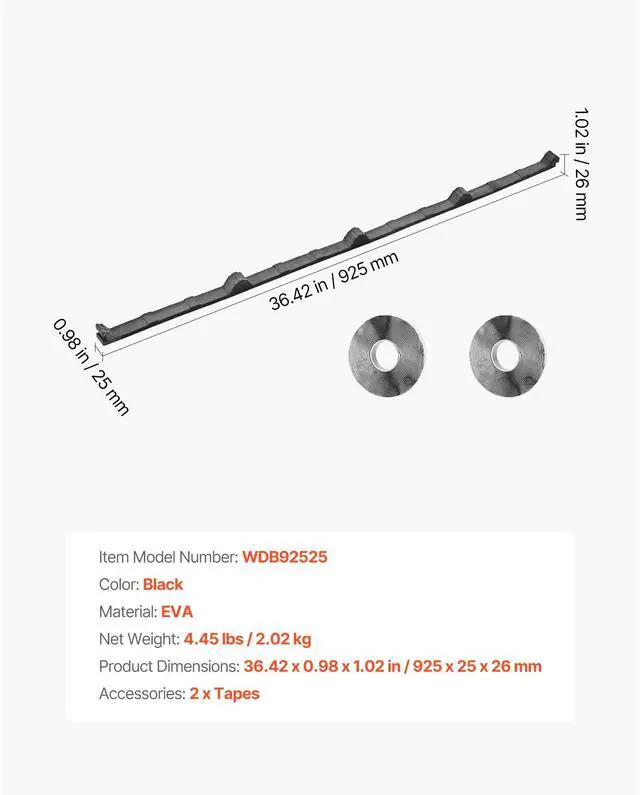 Color: Black,Item Model Number: WDB92525,Material: EVA,Product Dimensions: 36.42 x 0.98 x 1.02 in / 925 x 25 x 26 mm,Net Weight: 4.45 lbs / 2.02 kg