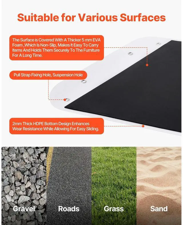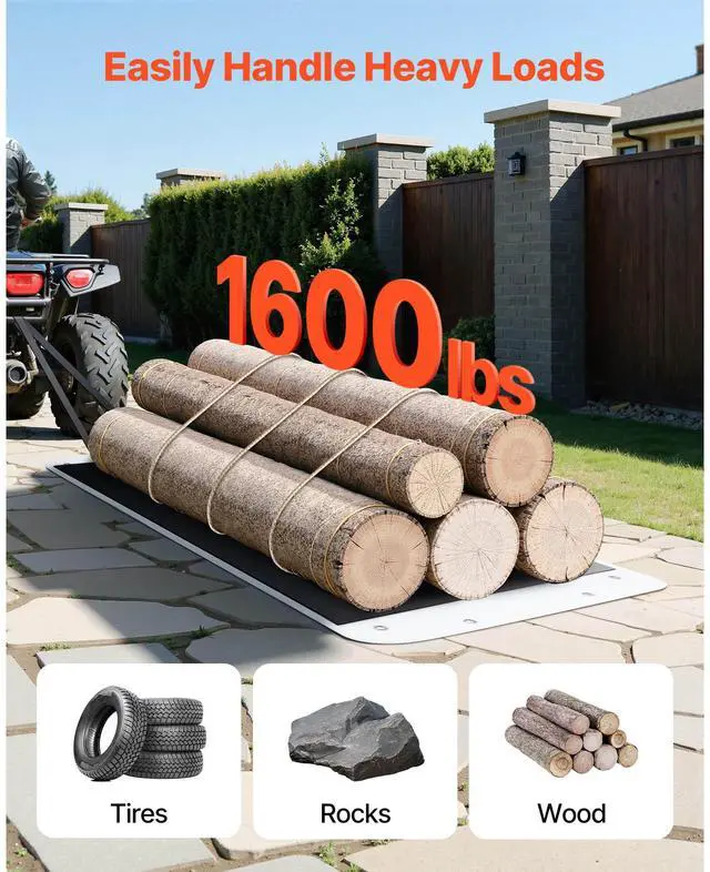 Yard Drag Sled 110 x 46 in 1600lbs Heavy Duty PE Glider Hauler Mat Pull Cable