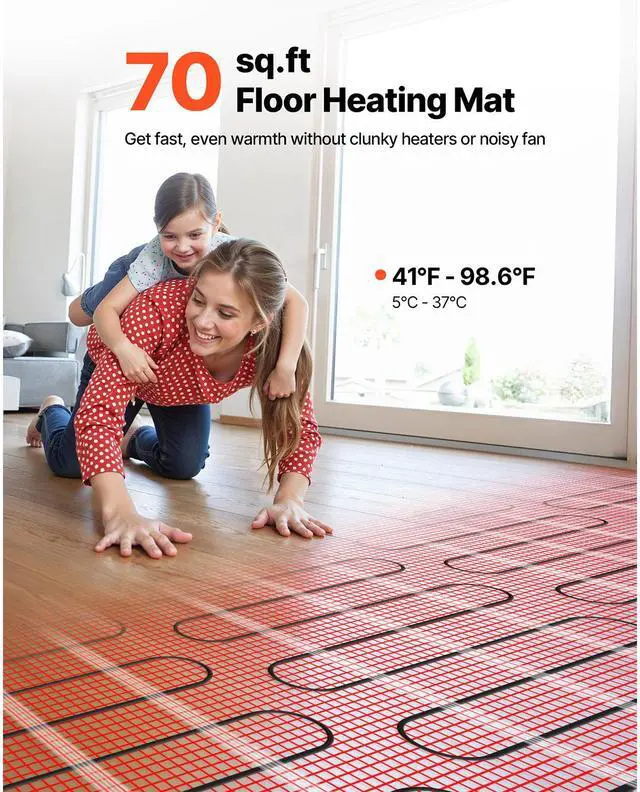 70 sqft Self-Adhesive Mesh Floor Heating Mat 120V Radiant Heated System