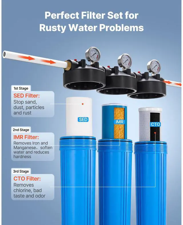 3-Stage Whole House Water Filter System 4.5"x20" IMR Reduce Iron Manganese