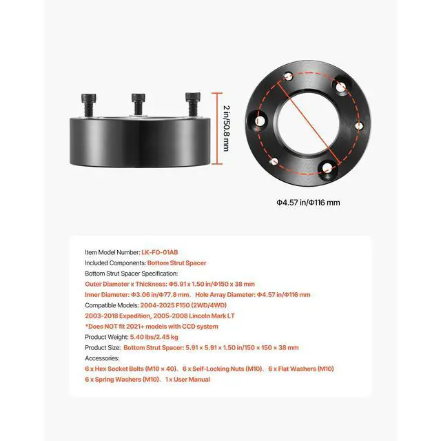 Front Lift Height: 2 in/50.8 mm,Item Model Number: LK-FO-01AB,Product Weight: 5.40 lbs/2.45 kg,Product Dimensions: 5.91 x 5.91 x 1.50 in/150 x 150 x 38 mm