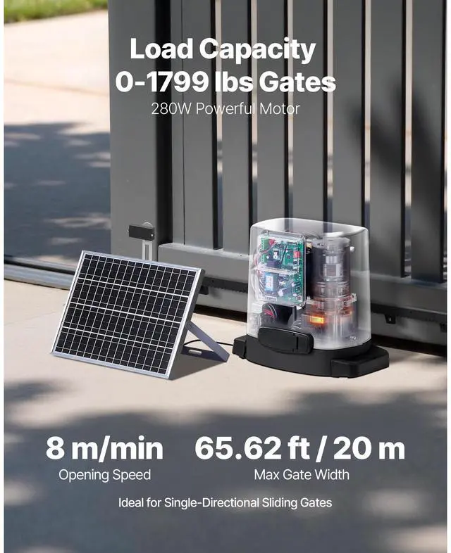 • VEVOR 280W Solar Gate Opener 1799lbs Electric Gate Opener Chain Drive 2 Remotes