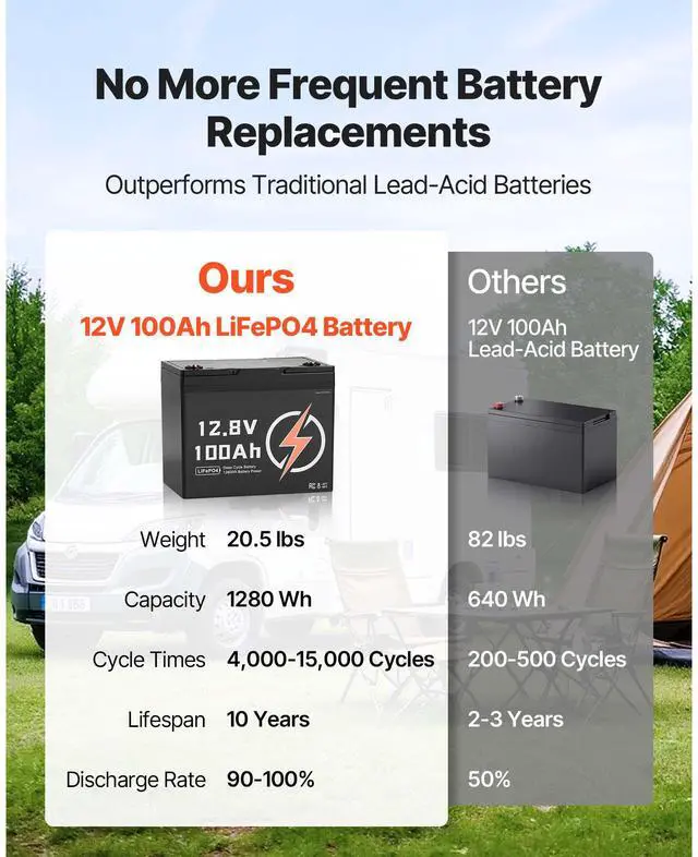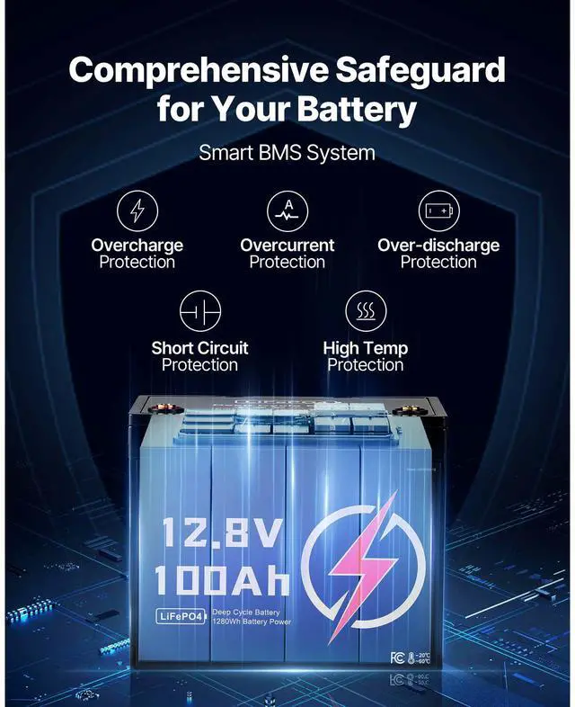 12V 100Ah Deep Cycle LiFePO4 Battery BMS Lithium Iron Phosphate Battery for RV