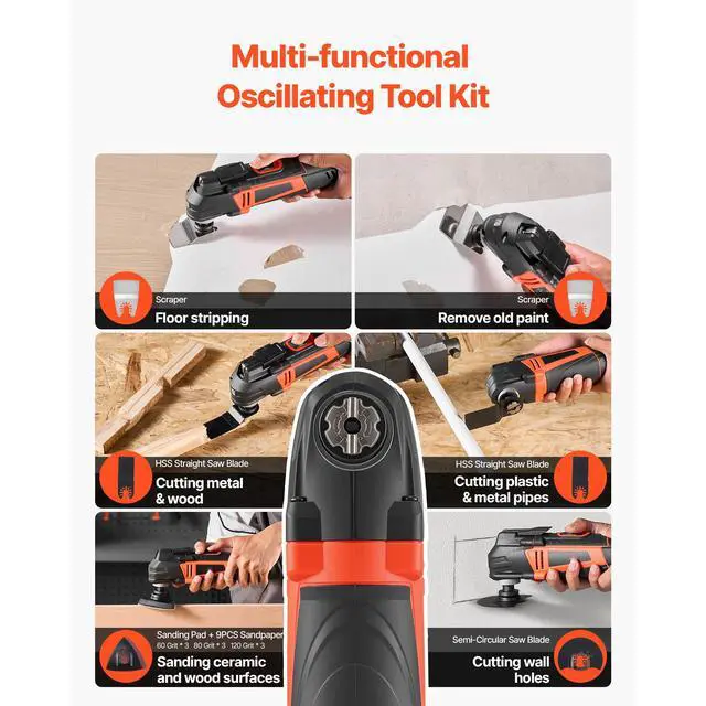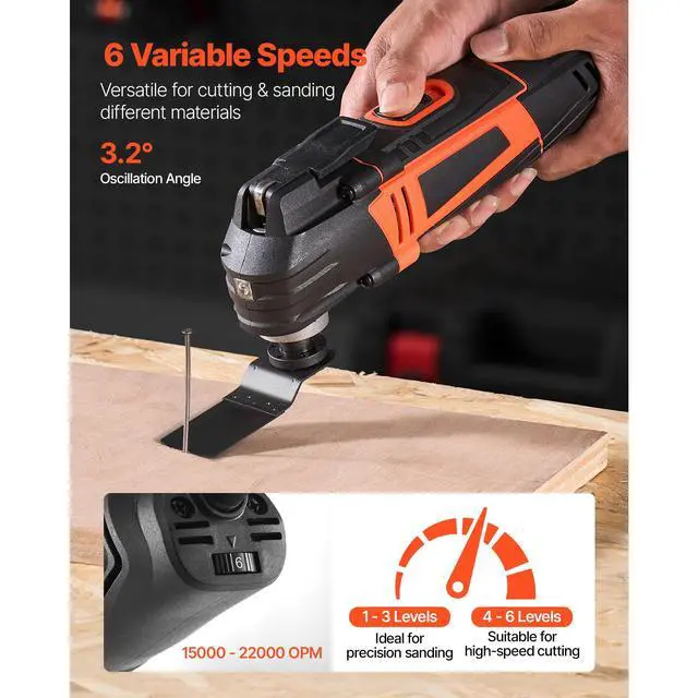 VEVOR Multitool Oscillating Tool 3Amps Corded Oscillating Tool 6 Variable Speeds