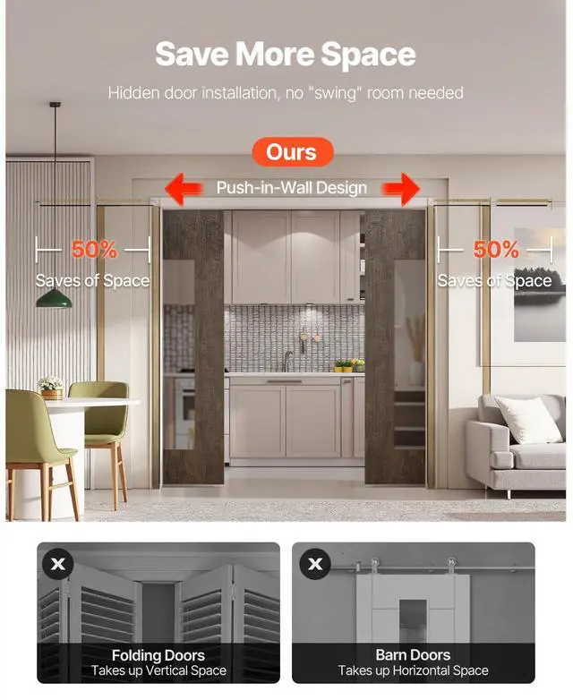 Pocket Door Frame Kit Pocket Door Kit for 48-72 in Wide 80 in High Soft Close