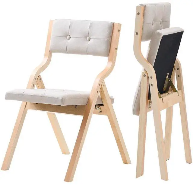 Wooden Folding Chairs with Padded Cushion and Wooden Frame Beige Set of 2
